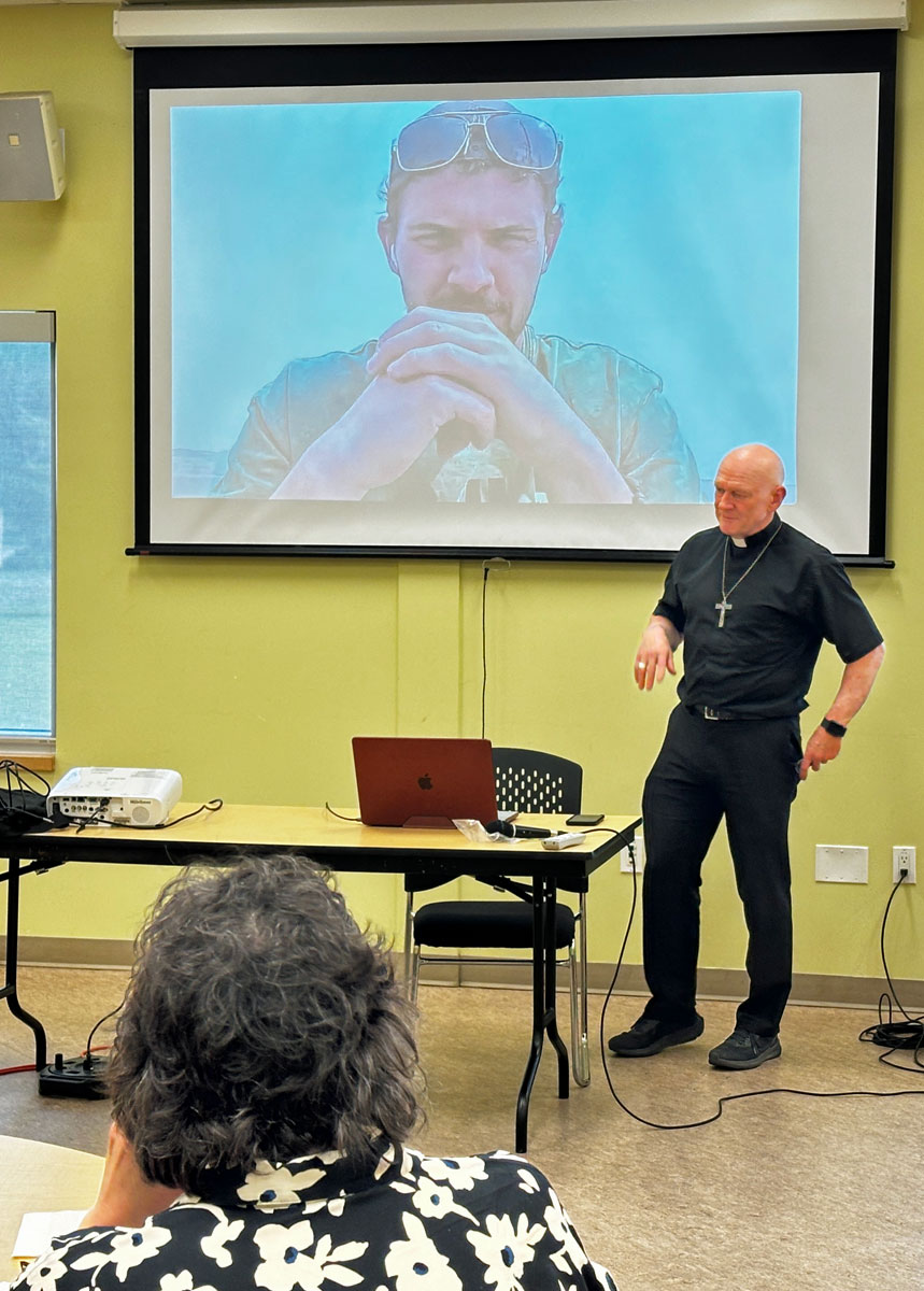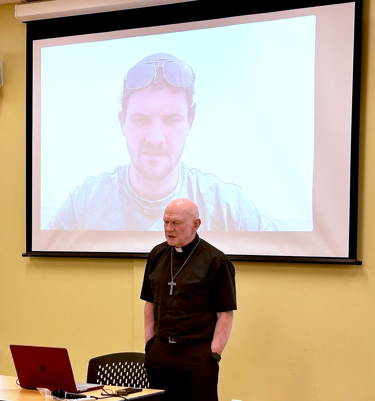 During a presentation on Zoom, young adult graduate of St. Therese Institute of Faith and Mission in Bruno, reflected on his outreach and service in the northern Diocese of Mackenzie-Fort Smith, with additional insights from Bishop Mark Hagemoen. (Photo by Tim Yaworski, Catholic Saskatoon News)