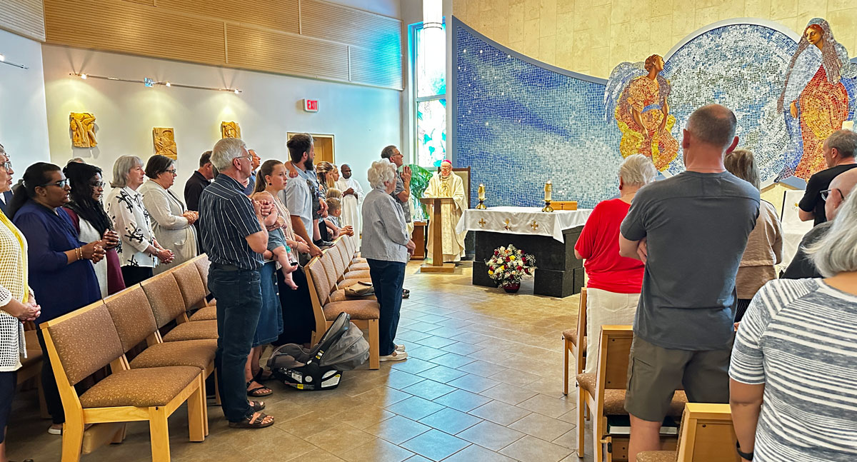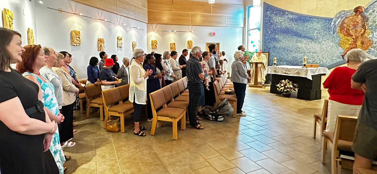 Mass in the Queen of Peace Chapel on May 31, 2025, during the IPL retreat day. (Photo by Tim Yaworski, Catholic Saskatoon News)