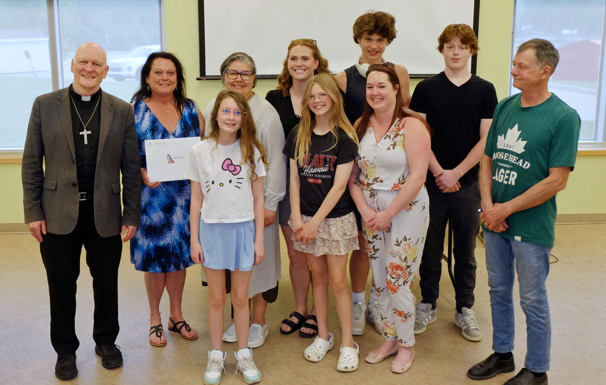 IPL participant Chandra Behrenz was joined by her family during the presentation of IPL diplomas May 31, 2025 at the Cathedral of the Holy Family in Saskatoon. (Photo by Kiply Lukan Yaworski, Catholic Saskatoon News)