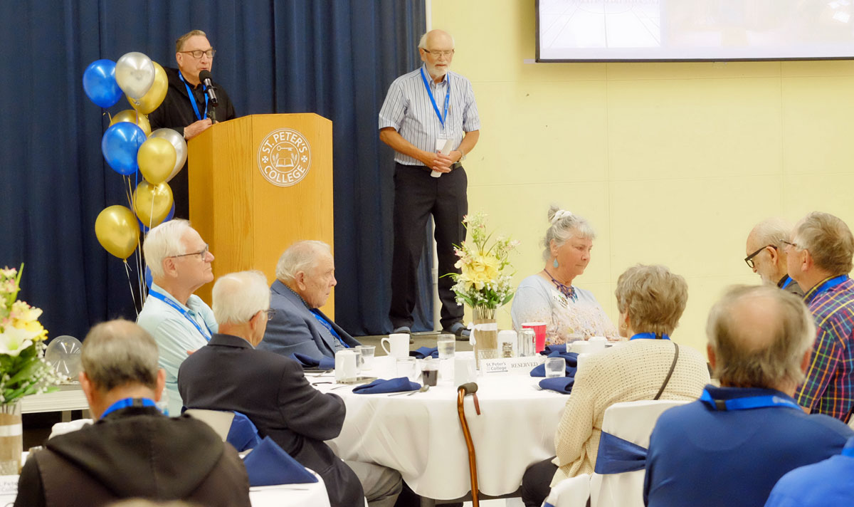 Tributes, toasts, and words of appreciation were part of the banquet program during the St. Peter’s College alumni reunion. (Photo by Kiply Lukan Yaworski, Catholic Saskatoon News)