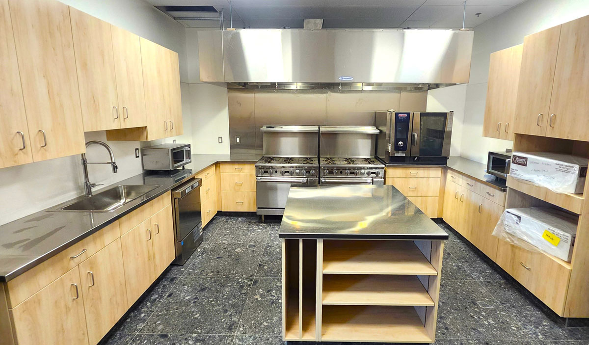 The kitchen will be the site of food preparation for students during the year. (Photo by Jon Perez, Catholic Saskatoon News)