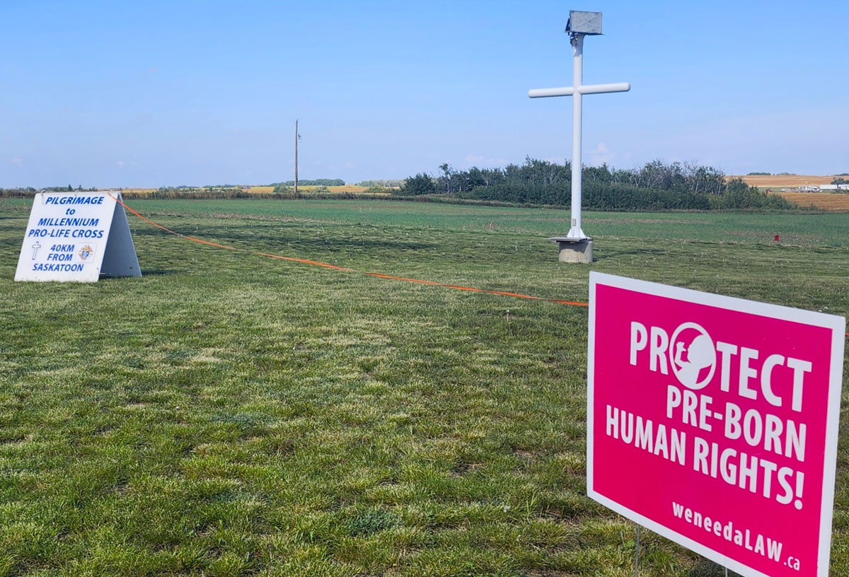 The 100-foot Millennium Pro-Life Cross was raised in 2006, replacing an earlier wooden cross. The monument was first envisioned by local farmer Joseph Bayda, Sr. as a witness to the sanctity of life, and originally supported as a millennium project by the Knights of Columbus council of Sts. Peter and Paul Ukrainian Catholic Parish in Saskatoon. Many others have supported the initiative over the years.