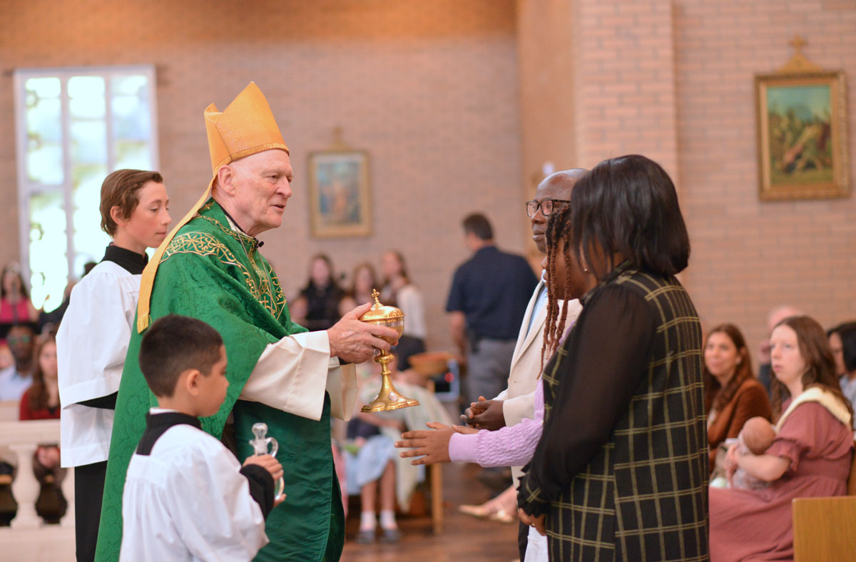 Bishop Hagemoen accepts the gifts brought forward during the Mass Sept. 28. (Photo by Danielle Mase)