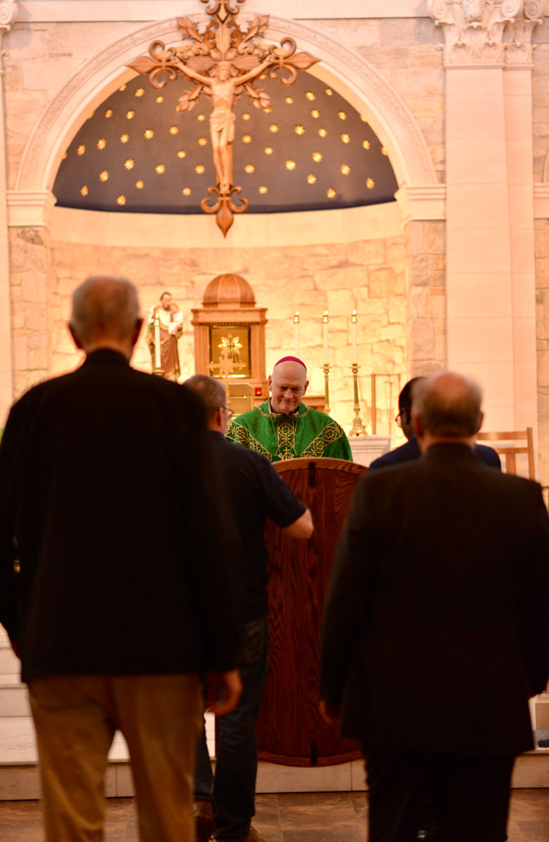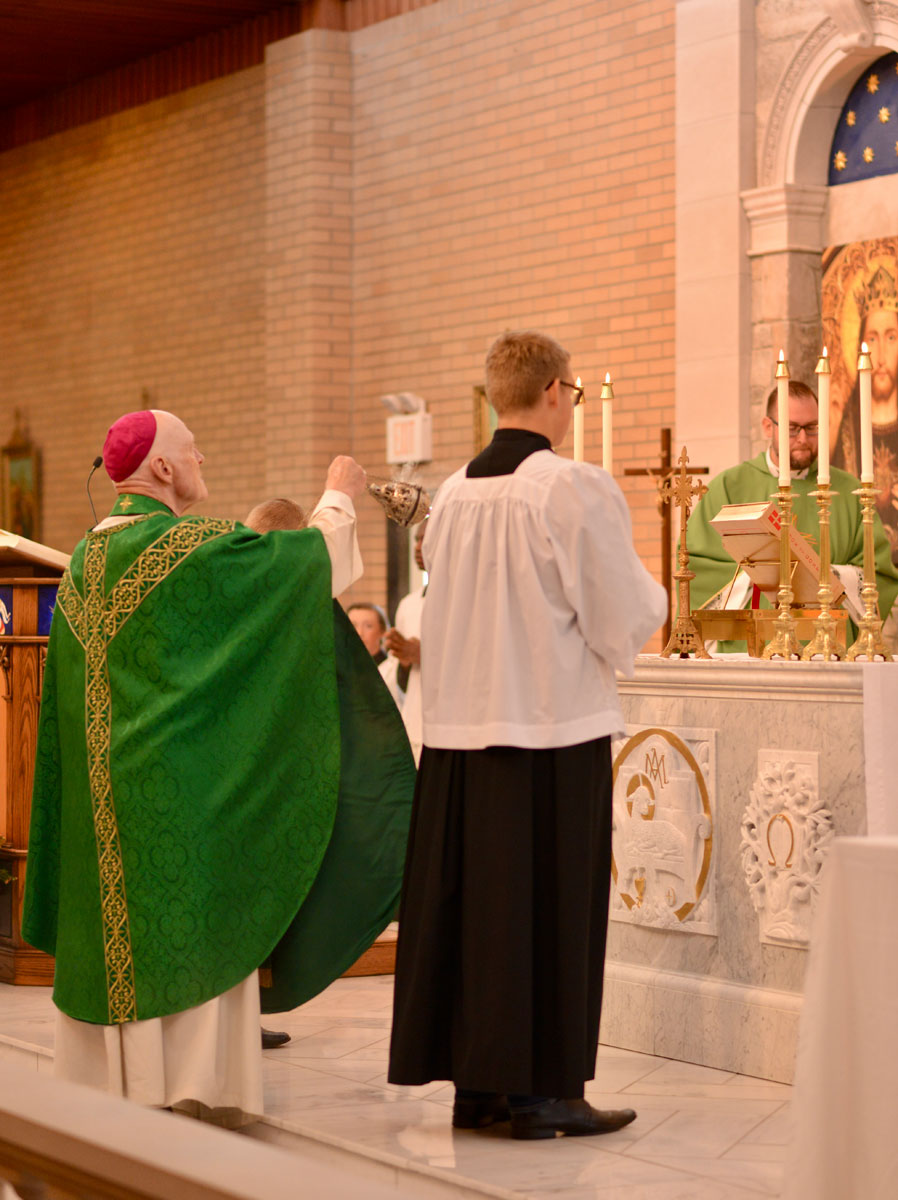 Bishop Hagemoen accepts the gifts brought forward during the Mass Sept. 28. (Photo by Danielle Mase)