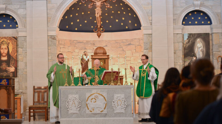 Bishop Mark Hagemoen celebrated Holy Eucharist with Our Lady of Lourdes pastor Fr. Daniel Yasinski and former pastor Fr. Geoffrey Young to mark the occasion.