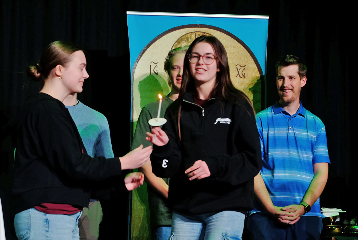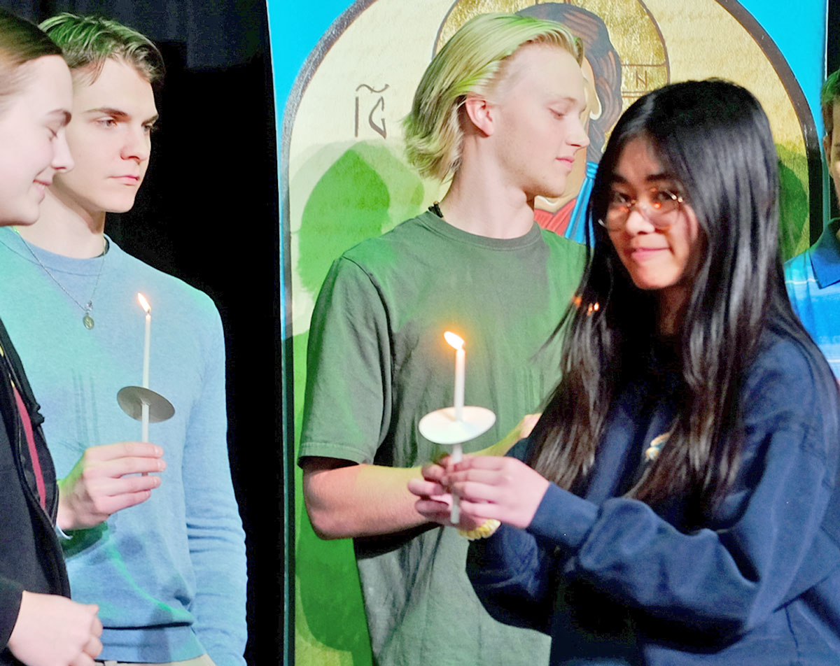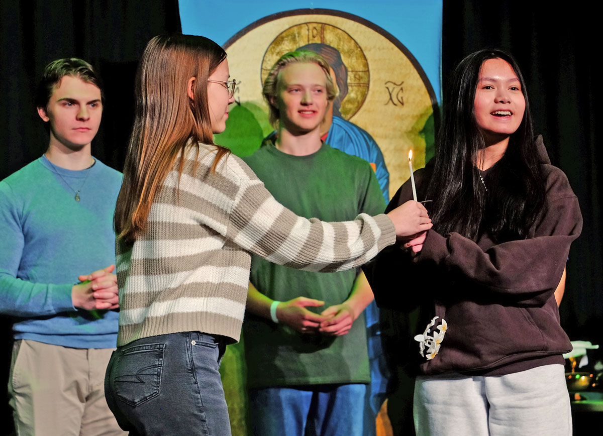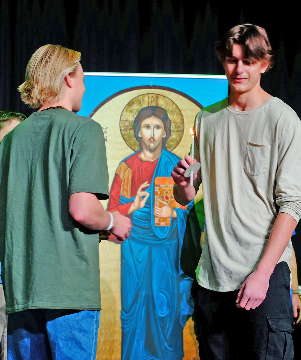 Youth in grades 10-12 who participated in the weekend retreat were sent forth in a ceremony in which they received a lit candle as a symbol of the Light of Christ, and were presented with a cross by a representative of all those who prayed, mentored, and served them through the many hours of the weekend retreat.
