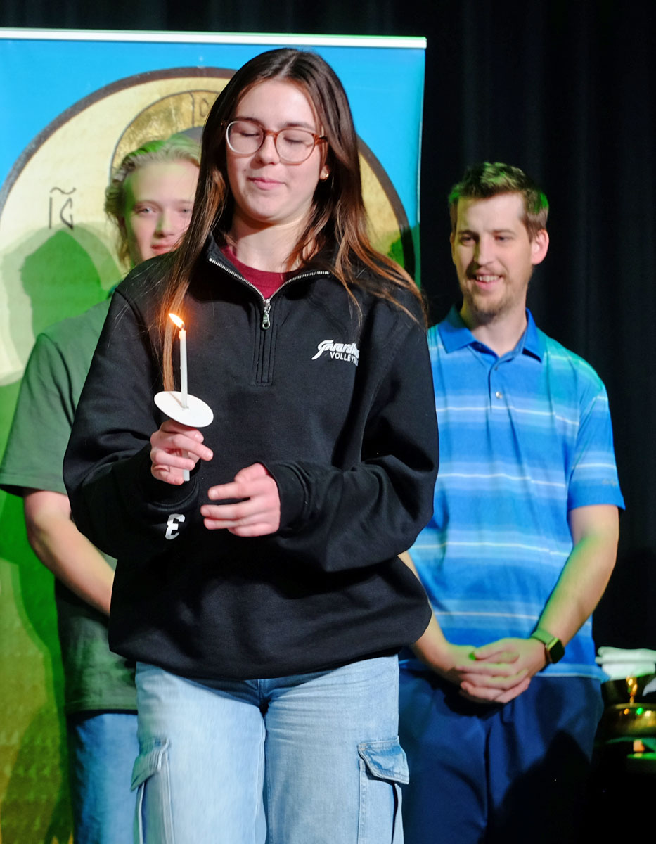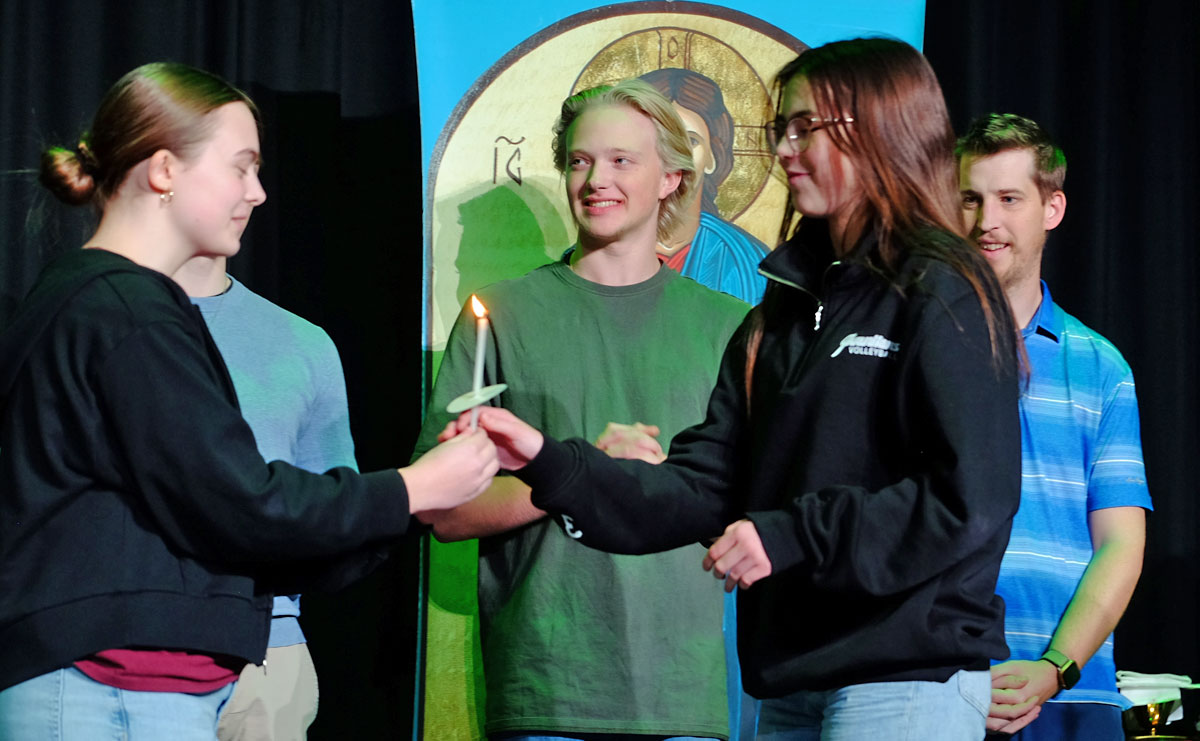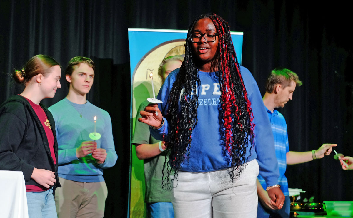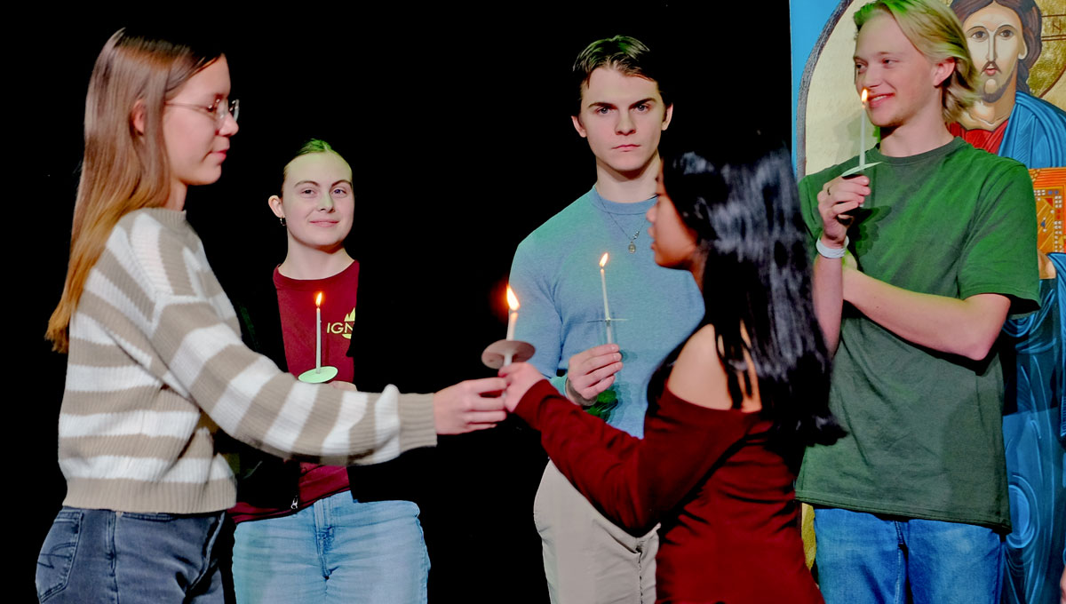 Youth in grades 10-12 who participated in the weekend retreat were sent forth in a ceremony in which they received a lit candle as a symbol of the Light of Christ, and were presented with a cross by a representative of all those who prayed, mentored, and served them through the many hours of the weekend retreat.