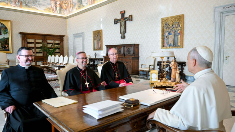 Archbishop Smith met the pope, along with Bishop Pierre Goudreault of Sainte-Anne-de-al-Pocatière and president of the Canadian Conference of Catholic Bishops (CCCB), and Fr. Jean Vézina, CCCB general secretary.